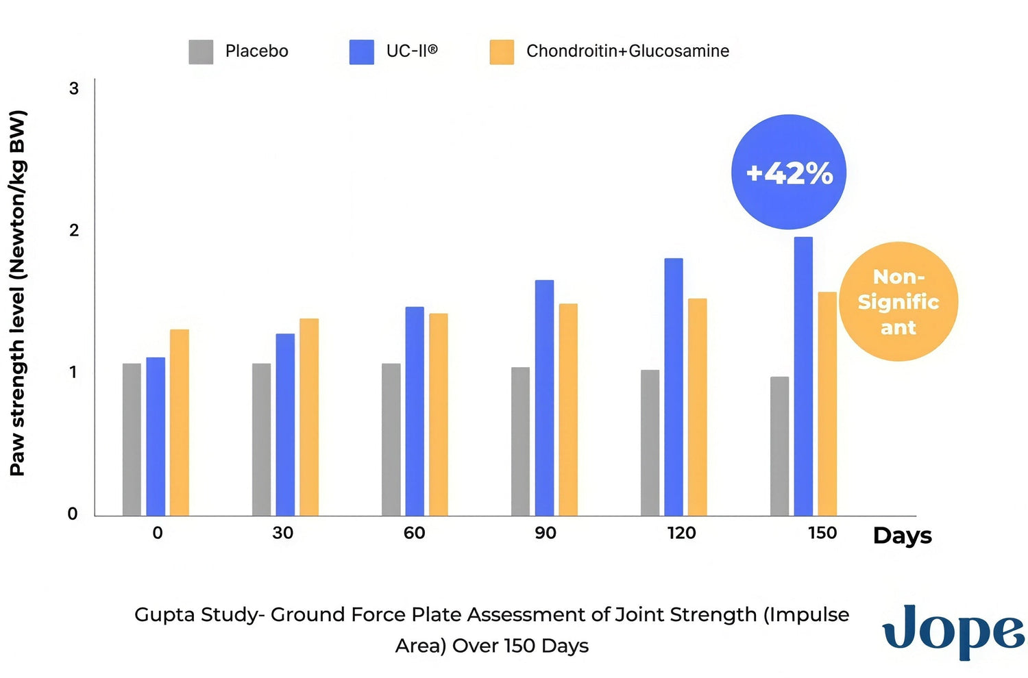 UC-II ® collagen, one of Jope's 3 active ingredients, has been proven in SEVERAL scientific studies to stop this vicious circle more effectively than glucosamine and chondroitin combined.